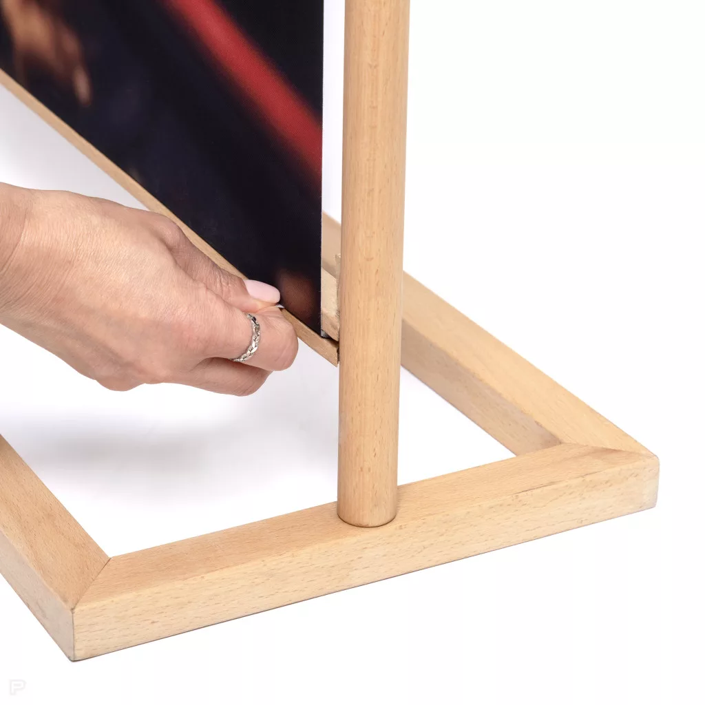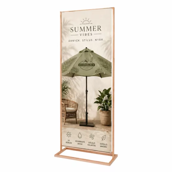 Banner állvány Rustic 85 × 200 cm – természetes fa megjelenésű, modern reklámfelület
