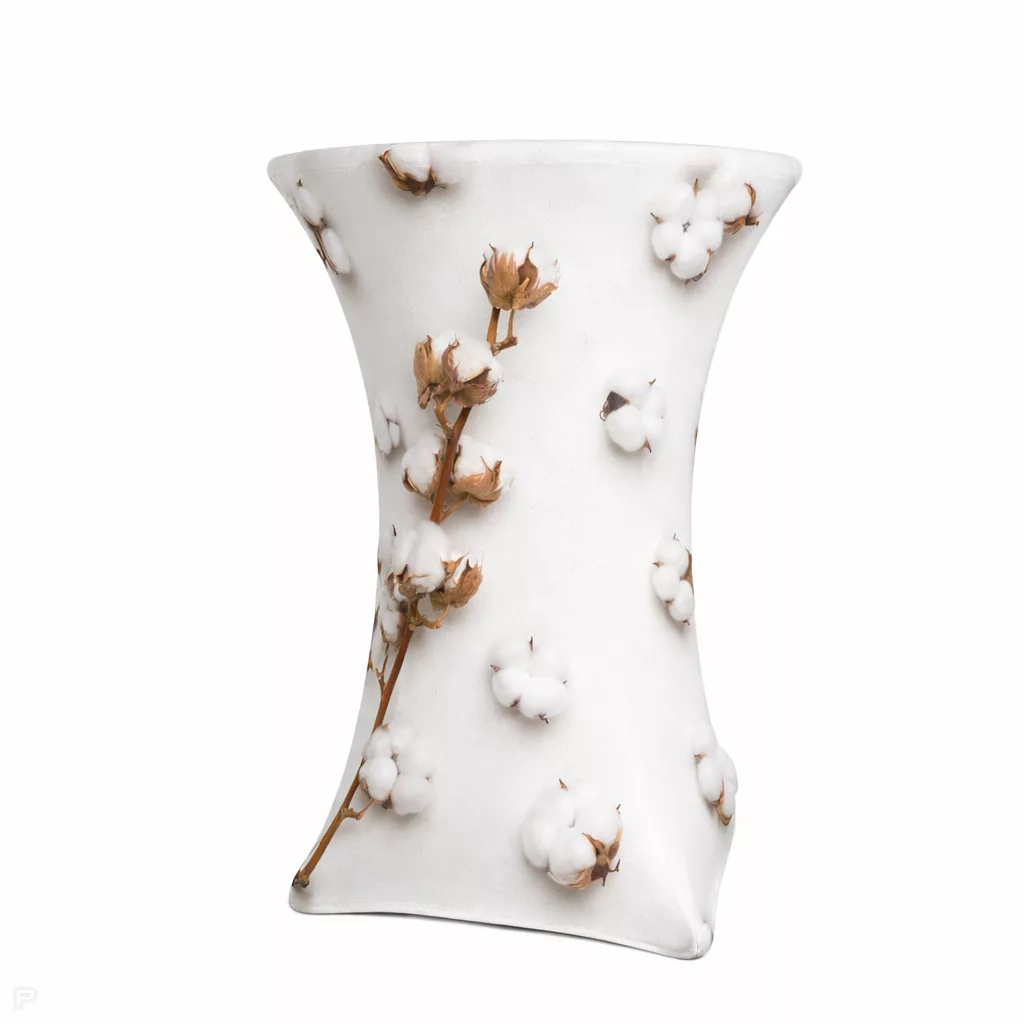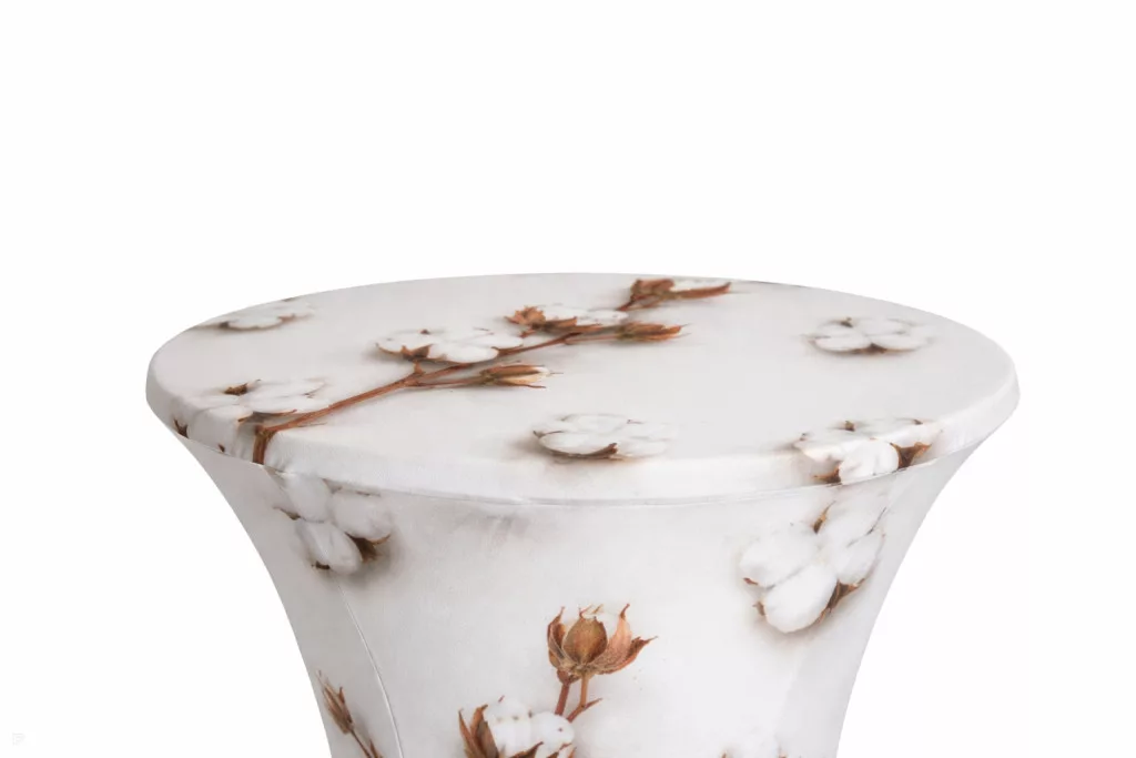 A terítő kifejezetten állóasztalokhoz tervezett, rugalmas textilből készül, amely pontosan illeszkedik az asztal formájára.