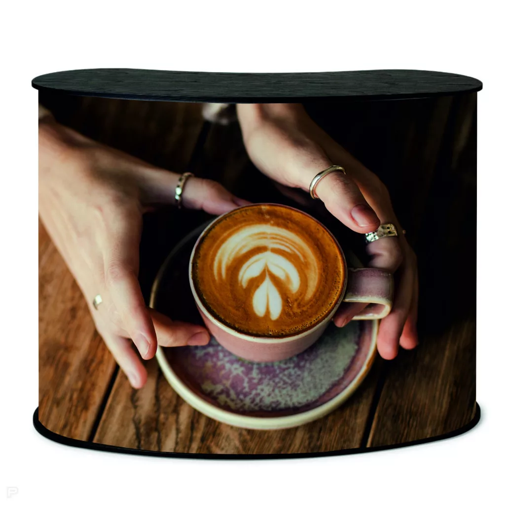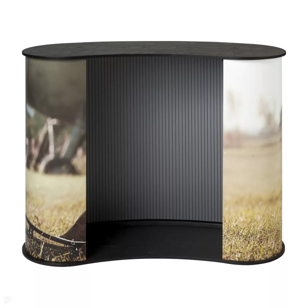 A kínáló pult Pro M egy kompakt, mégis professzionális megjelenésű prezentációs pult, amely ideális választás kiállításokra, rendezvényekre és promóciókhoz.