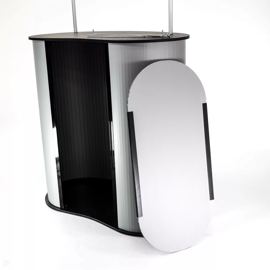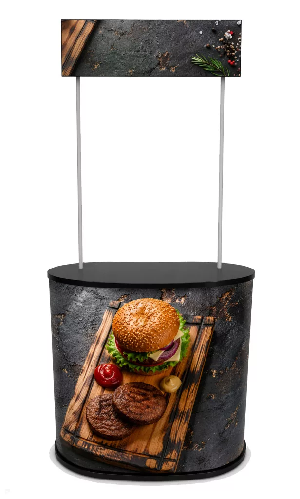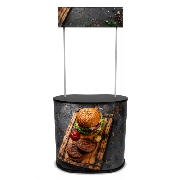 Kínáló pult Standard nagy – fekete fedlappal, gyorsan felállítható promóciós pult