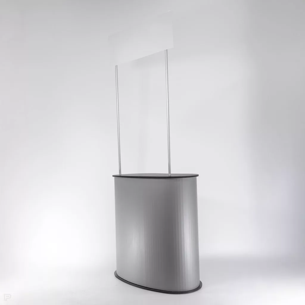A Standard nagy kínáló pult ideális választás kiállításokra, rendezvényekre és promóciós megjelenésekhez. Nagy felületének köszönhetően látványos branding lehetőséget biztosít, miközben stabil és praktikus munkafelületet kínál.