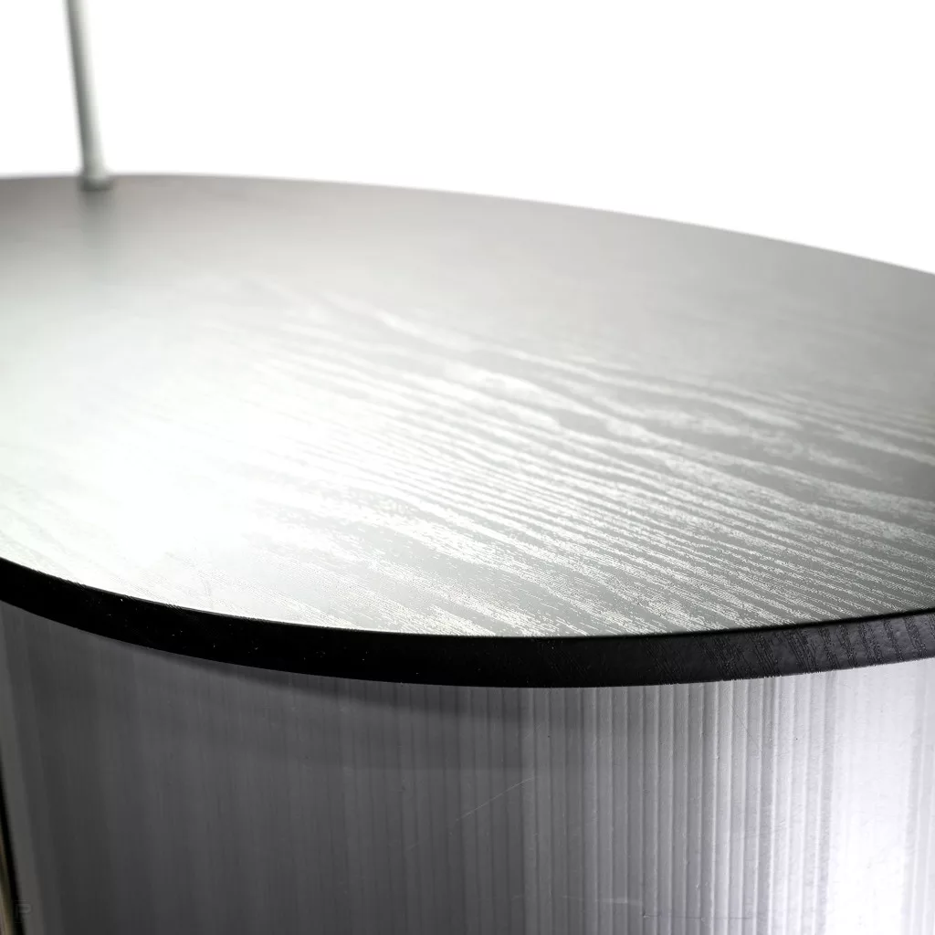A pult íves kialakítású front felülettel készül, PVC panelre rögzített grafikával, felső és alsó bútorlappal, valamint fekete színű fedlappal.