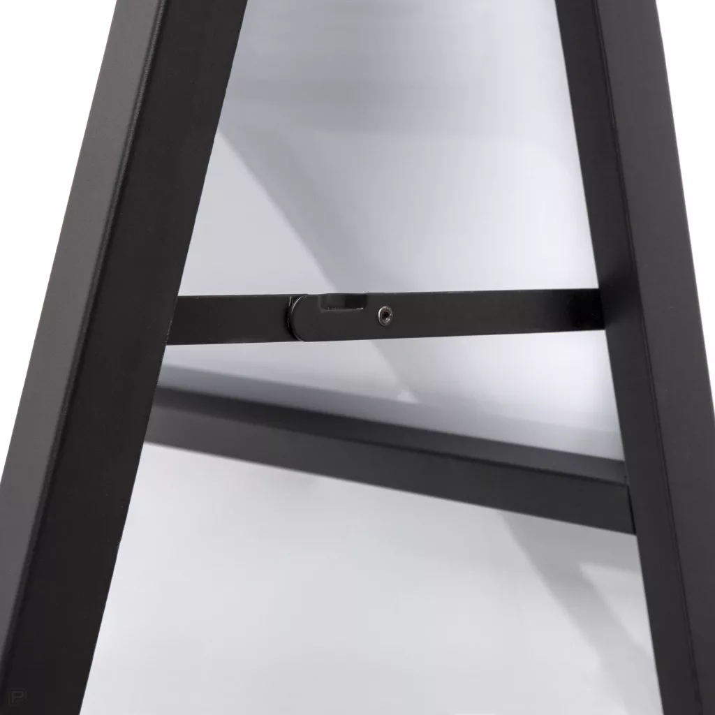A szerkezet fekete, porfestett acél vázzal készül, A-alakú kialakítással, amely stabil kültéri használatot biztosít.