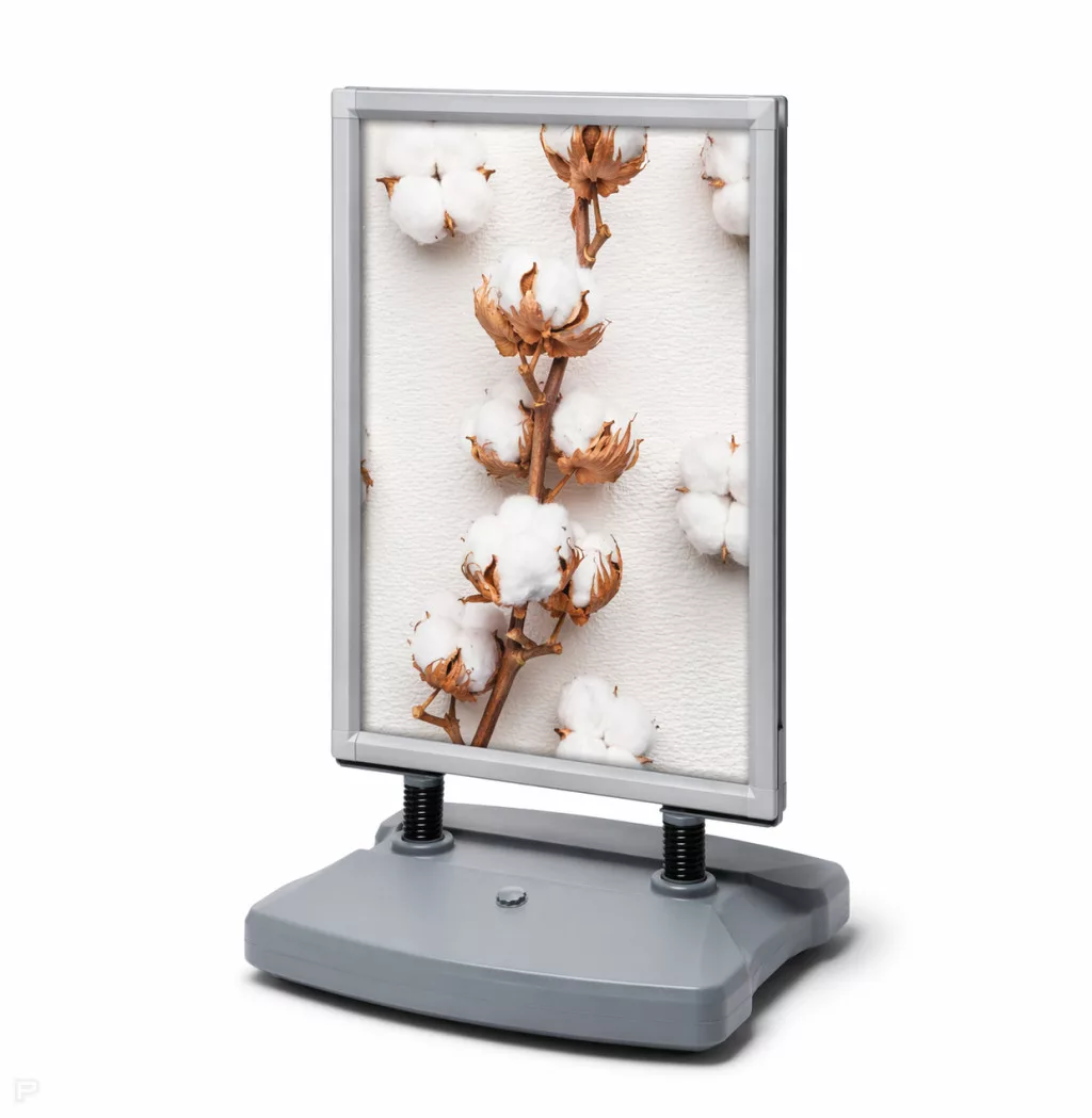 A rugós, szélkompenzált kialakításnak köszönhetően a tábla még erős szélben is stabil marad, miközben a kétoldalas reklámfelület minden irányból jól látható.