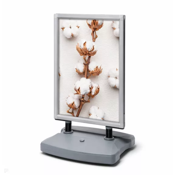 A rugós, szélkompenzált kialakításnak köszönhetően a tábla még erős szélben is stabil marad, miközben a kétoldalas reklámfelület minden irányból jól látható.