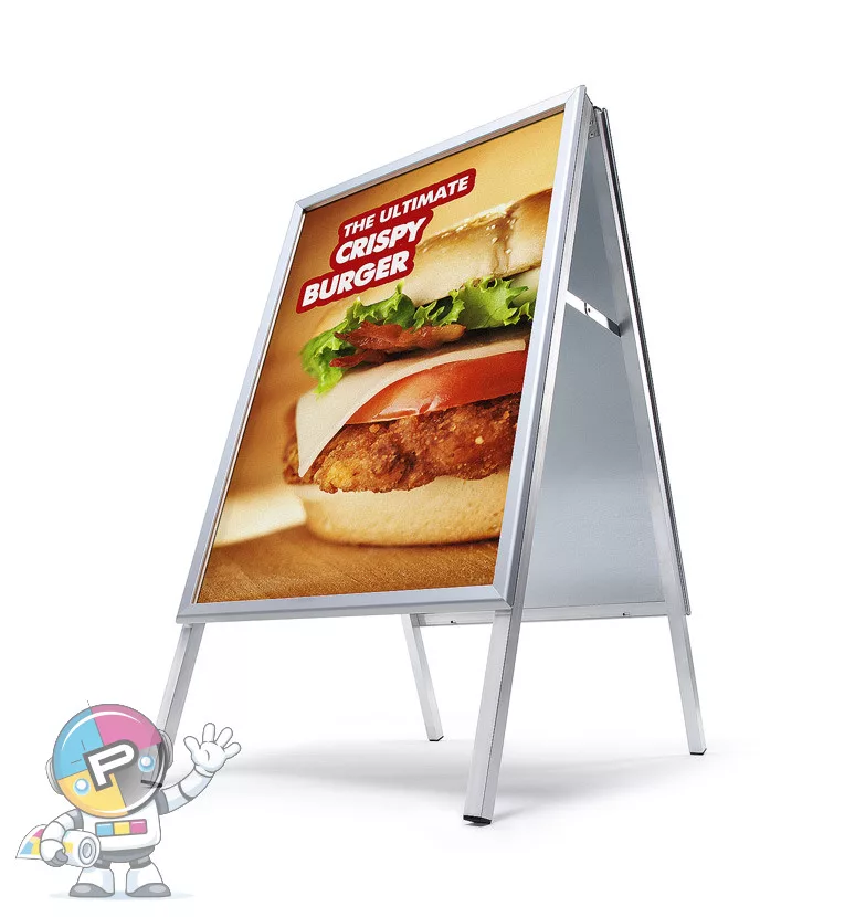 A kétoldalas, A alakúra nyitható szerkezet lehetővé teszi, hogy mindkét irányból jól látható legyen az üzenet, miközben a pattintós kerettechnika segítségével a plakátok néhány mozdulattal, szerszám nélkül cserélhetők.