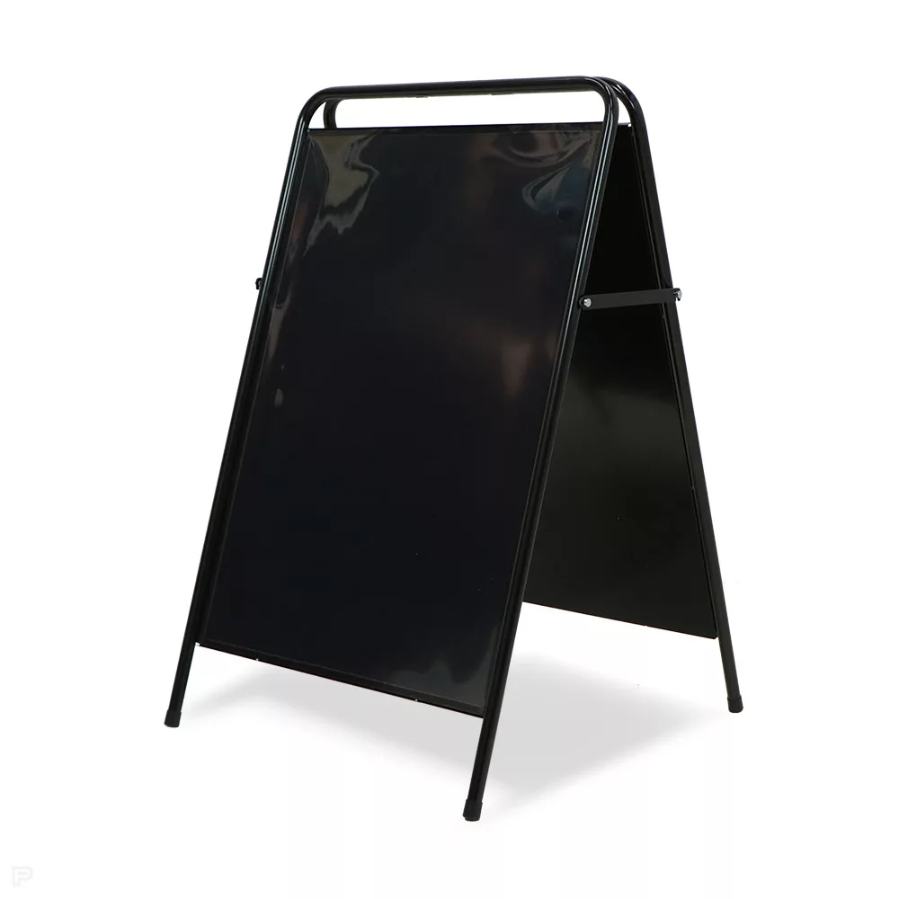 A modern, fekete porfestett acél kivitel elegáns megjelenést biztosít, miközben a kétoldalas kialakításnak köszönhetően mindkét irányból jól látható az üzenet.