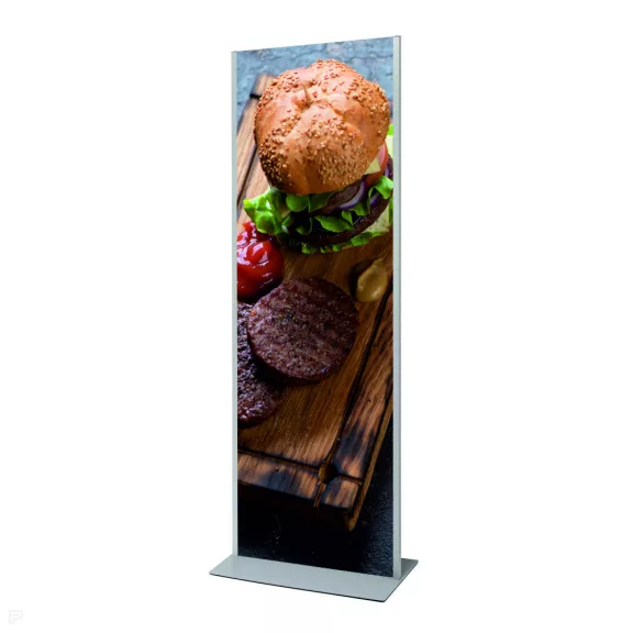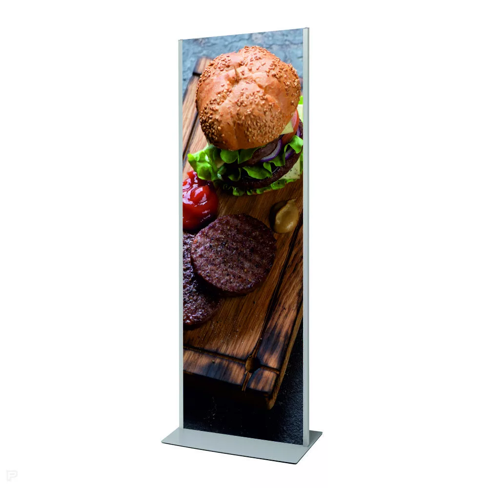 A Plakát állvány cserélhető panellel egy modern, stabil és könnyen frissíthető totem megoldás.