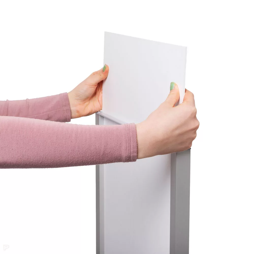 Plakát állvány cserélhető panellel – modern totemoszlop gyors grafikacseréhez