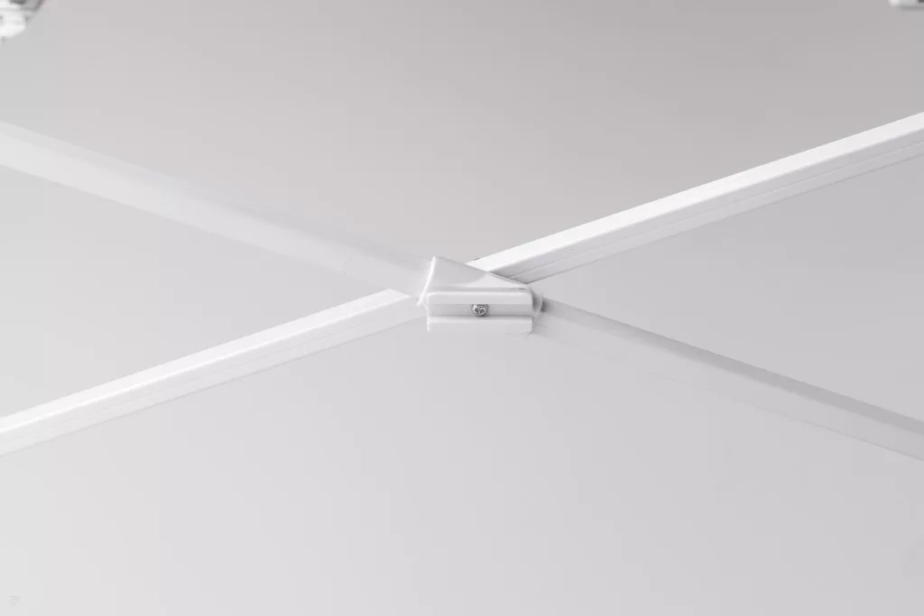 A stabil, hornyolt kialakítású fehér alumínium váz kiemelkedő tartósságot biztosít. A szerkezet elemei egymással összekapcsolhatók, akár egyenes, akár 90°-os csatlakozásokkal, így nagyobb vagy egyedi formájú installációk is könnyedén létrehozhatók.