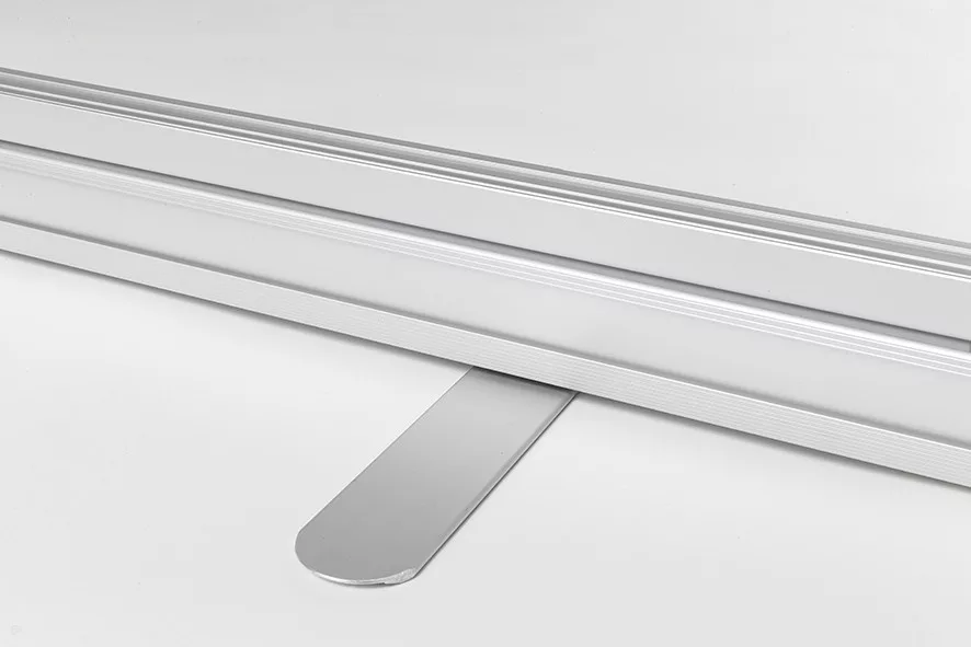 A masszív alumínium szerkezet stabil tartást ad, miközben könnyű marad, így egyszerűen szállítható és gyorsan felállítható. A grafika használaton kívül a kazettában védetten, feltekerve helyezkedik el, a rugós mechanika pedig gondoskodik a feszes megjelenésről.