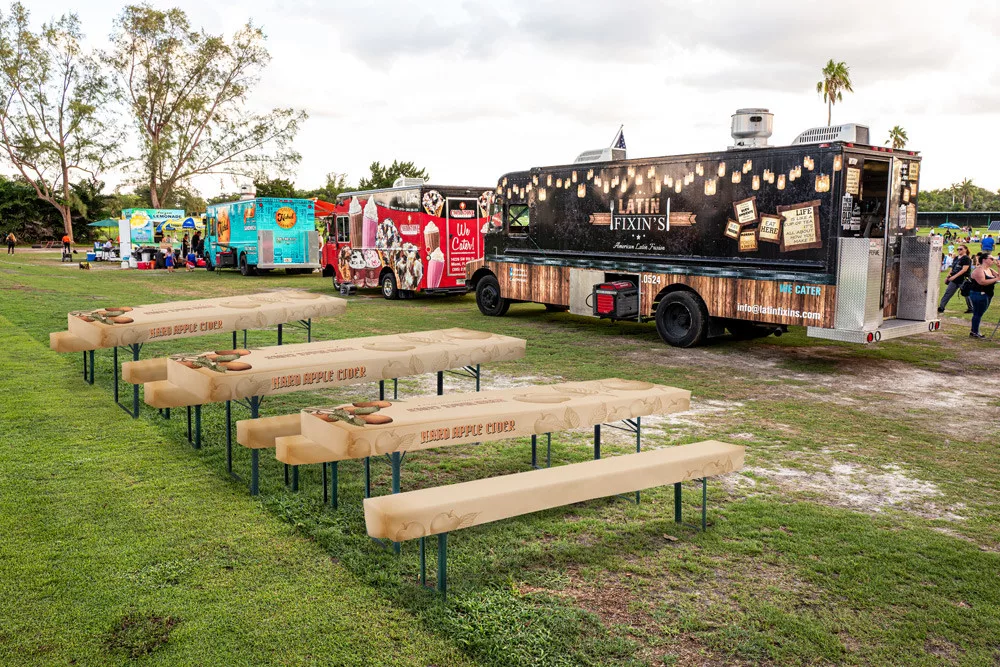 Get your total Beer Table Cover Set ready in the design you need. Made of Poly Poplin 100% PES material with a B1 certification, which makes it ideal and safe material to use at indoor festivities, events and parties. The Beer Table Cover Set consists out of a cover for the beer table and two seat covers. Available in two standard sizes, 50 x 180 cm and 50 x 200 cm. Choose to print a full design or brand your Beer Table Cover Set with your logos or messages. The sky is the limit!