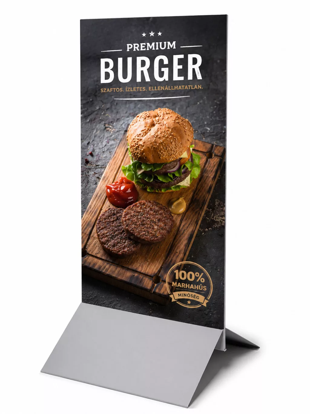 Erős tartás, egyszerű csere, letisztult megjelenés – ideális választás, ha fixen álló reklámfelületet szeretnél.