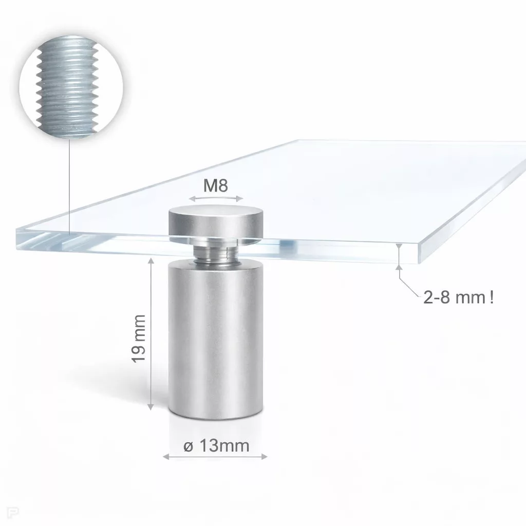 A 13×19 mm-es távtartó egy praktikus és esztétikus megoldás reklámtáblák falra történő rögzítéséhez. Segítségével a tábla eltartva kerül a faltól, így modern, letisztult „lebegő” hatást biztosít.