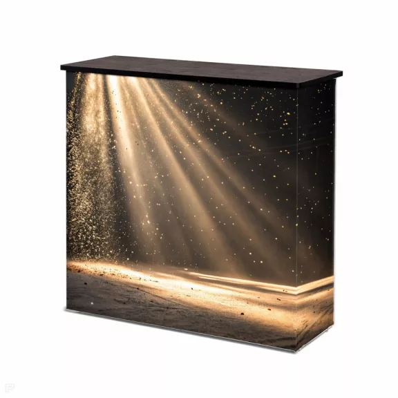 Textil kínálópult Impress fekete tetővel – prémium, világítható textil pult kiállításokra