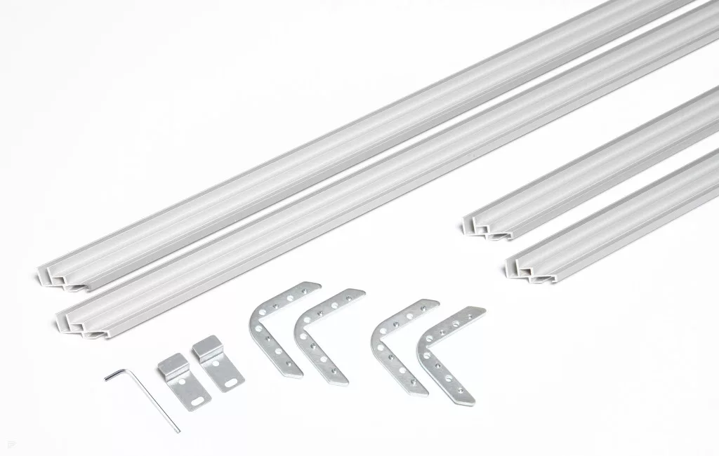 A rendszer egy 22 mm mély alumínium profilból készült falikeret, amely könnyű, mégis stabil.