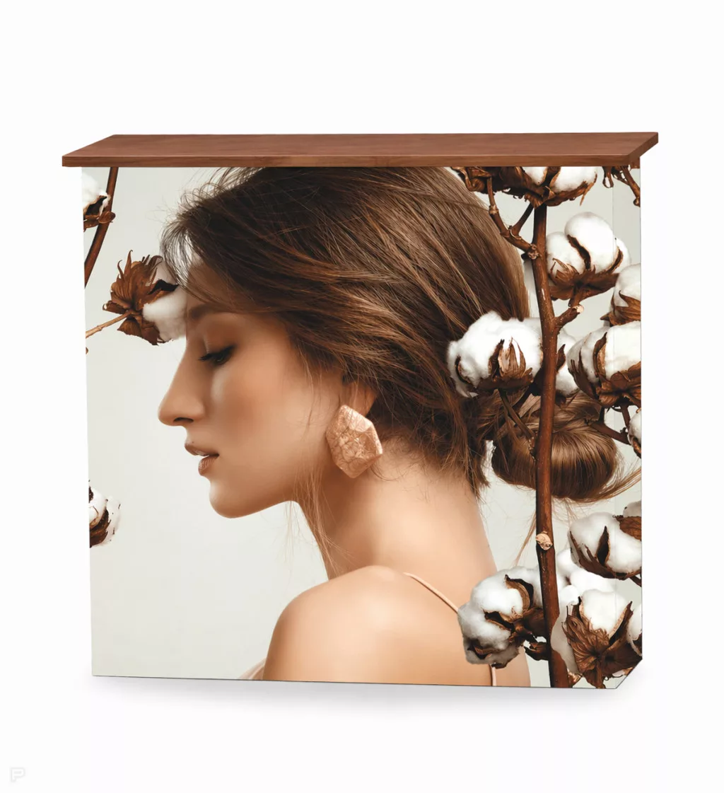 Textil kínálópult – modern, cserélhető grafikai megoldás