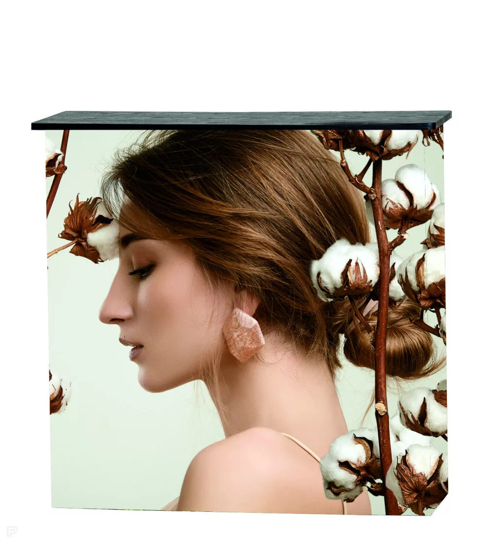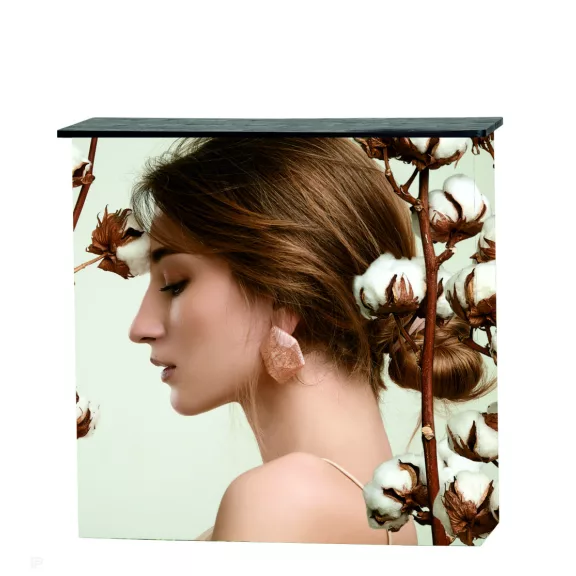 Textil kínálópult – modern, cserélhető grafikai megoldás