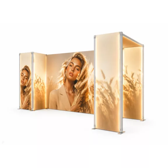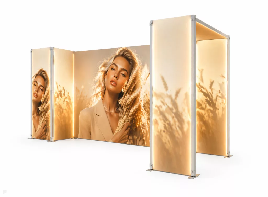 A Világító textilfal Pro Flex raktár elem egy praktikus és esztétikus tároló megoldás kiállítási standokhoz.