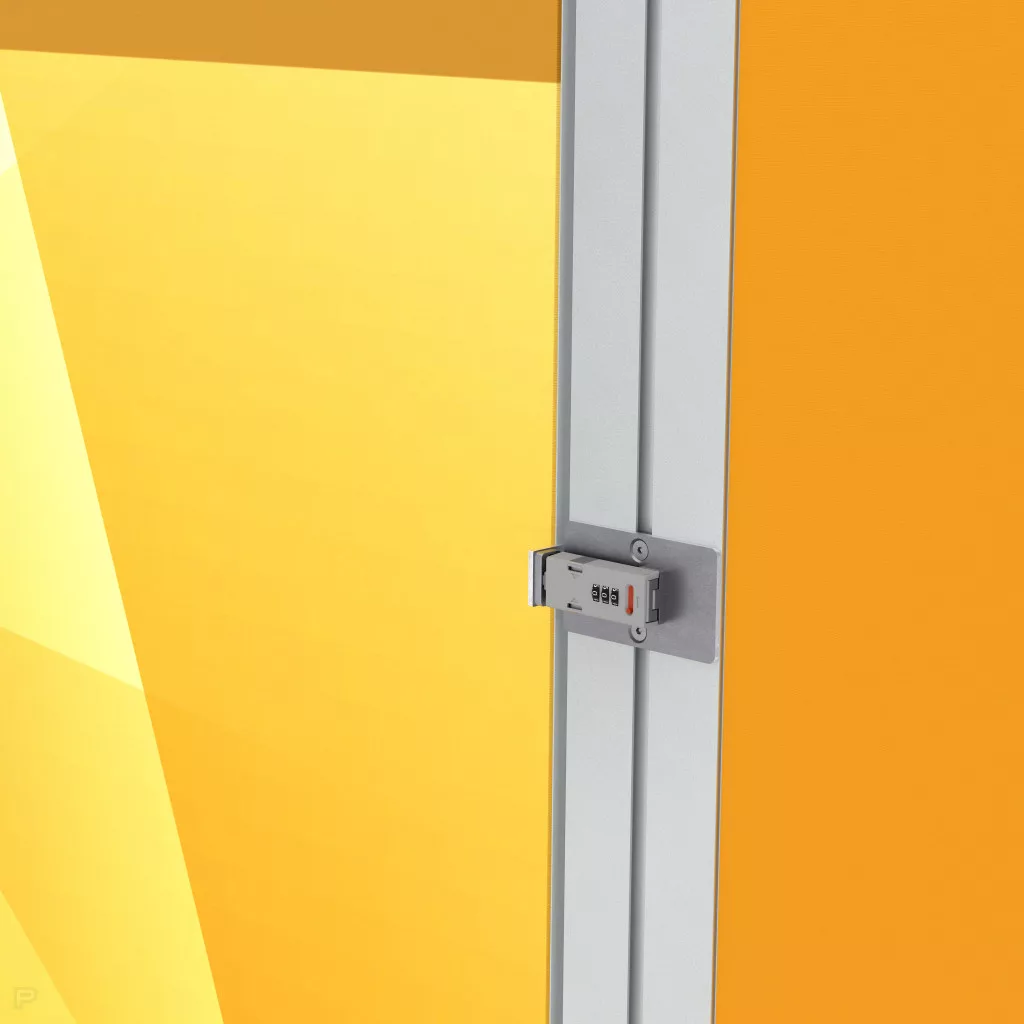 Az ajtó kódzárral zárható, így használat közben biztonságos és könnyen hozzáférhető tárolóteret biztosít.