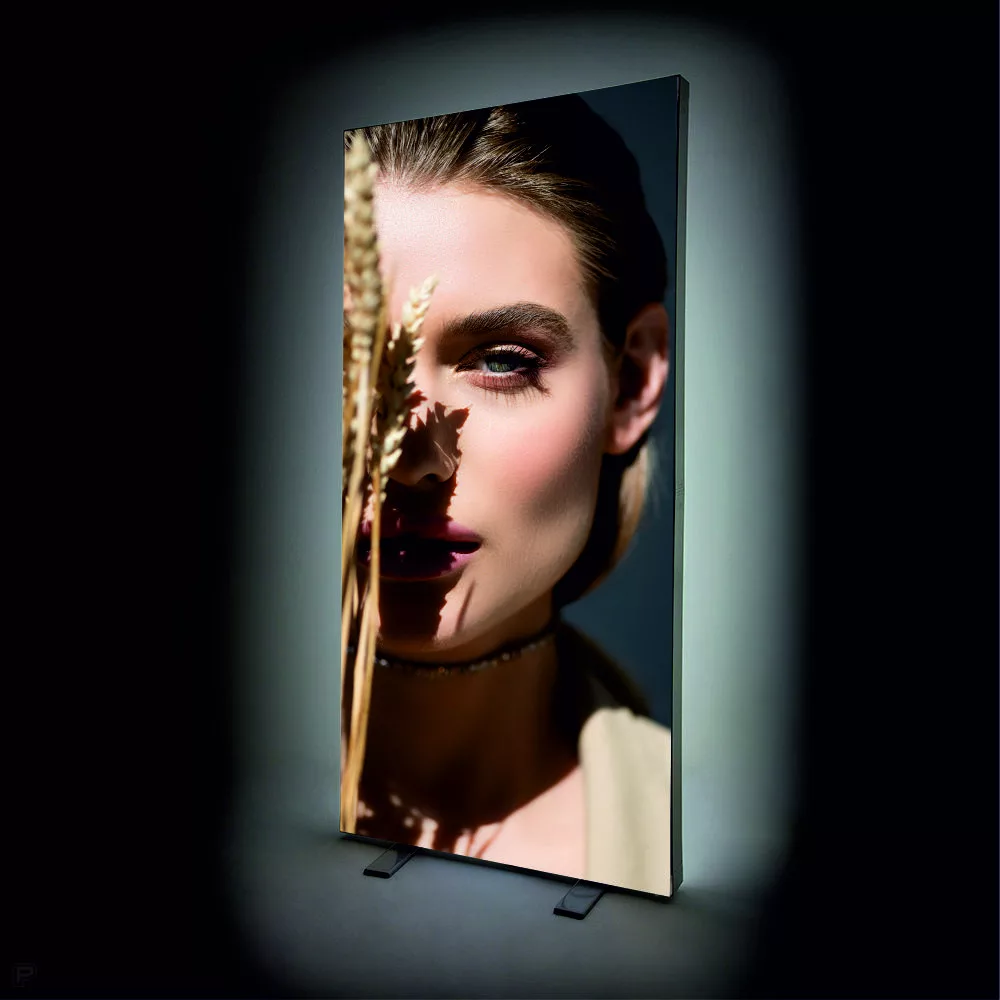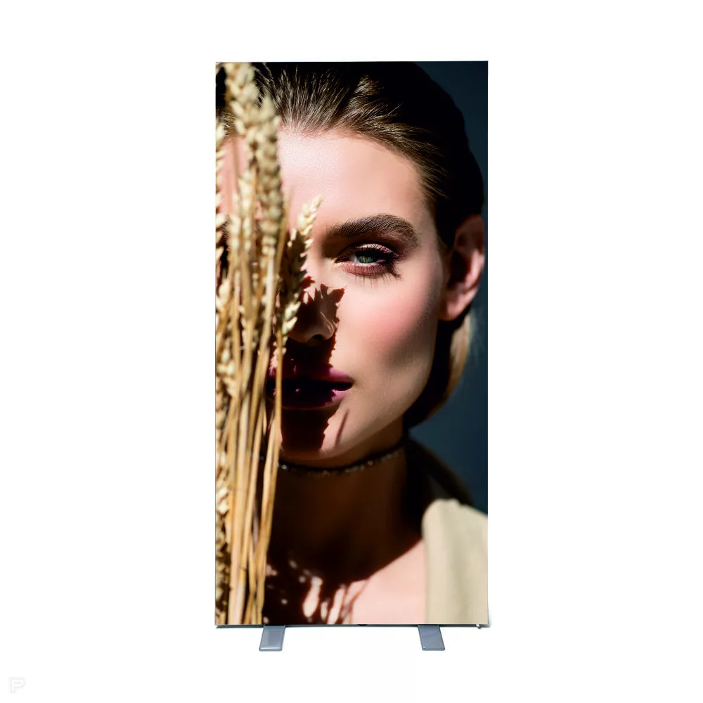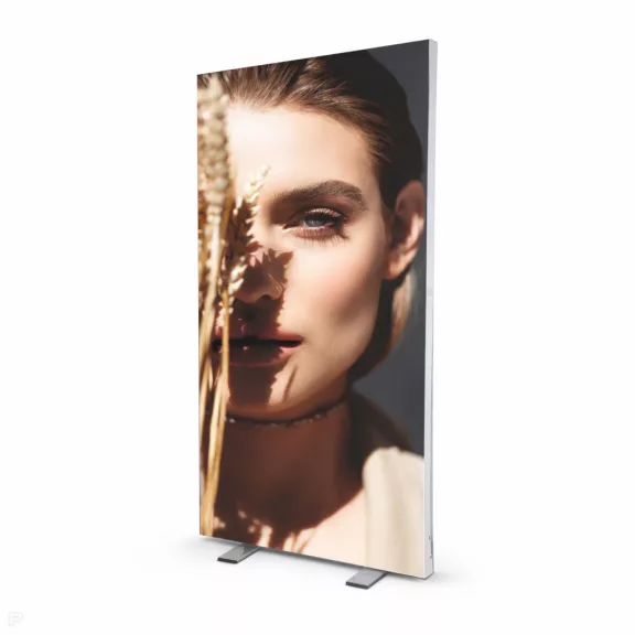 A grafika szilikon, vagyis SEG éllel illeszkedik a keretbe, így feszes, ráncmentes felületet ad, gyorsan cserélhető, és professzionális megjelenést biztosít.