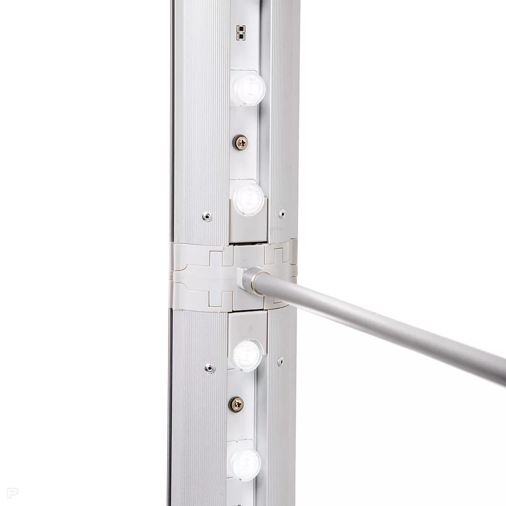 A rendszer egy összecsukható alumínium keretből áll, beépített LED világítással.