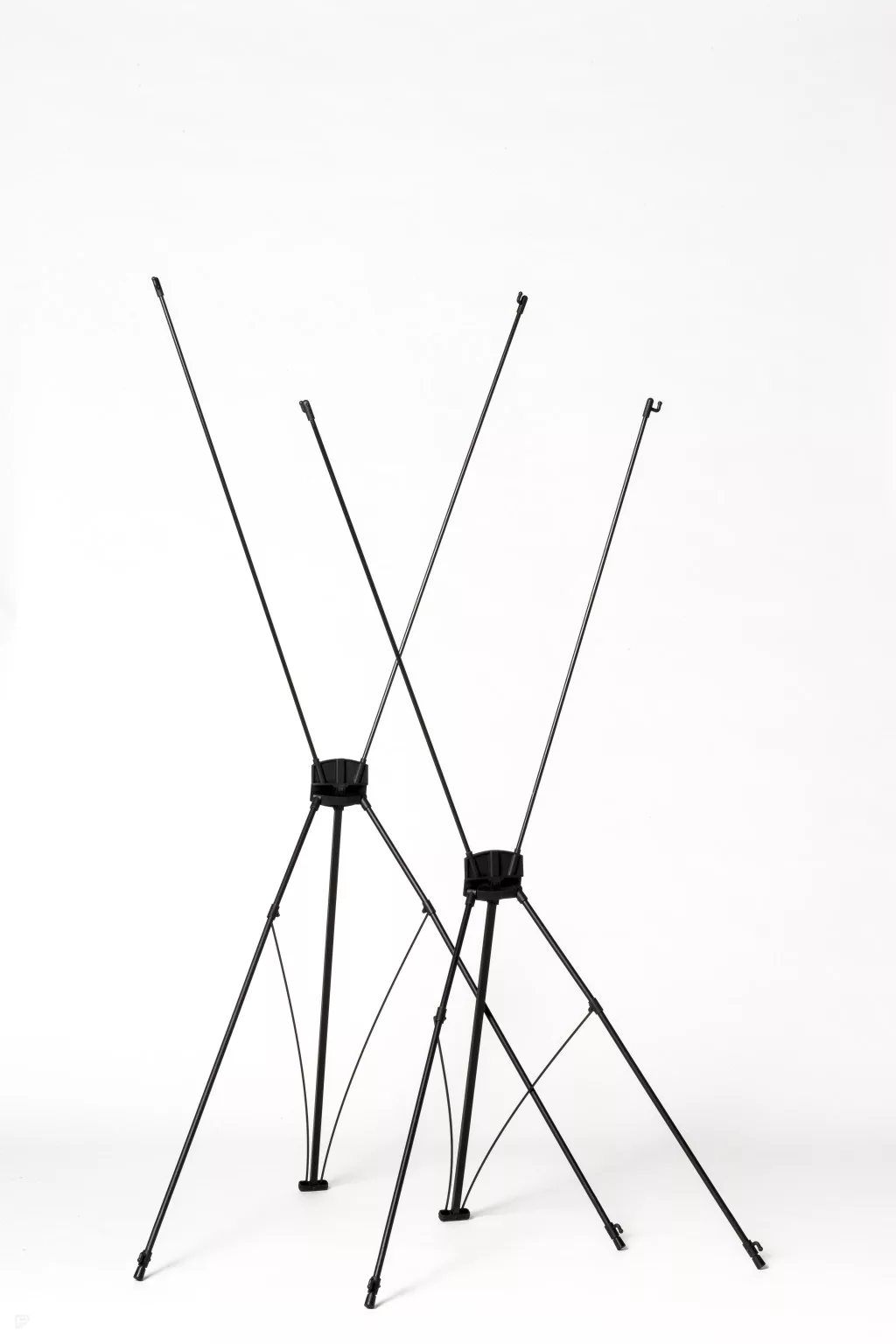 A szerkezet alumínium tripod (háromlábas) talppal és rugalmas felső karokkal készül, amelyek kifeszítik a grafikát.