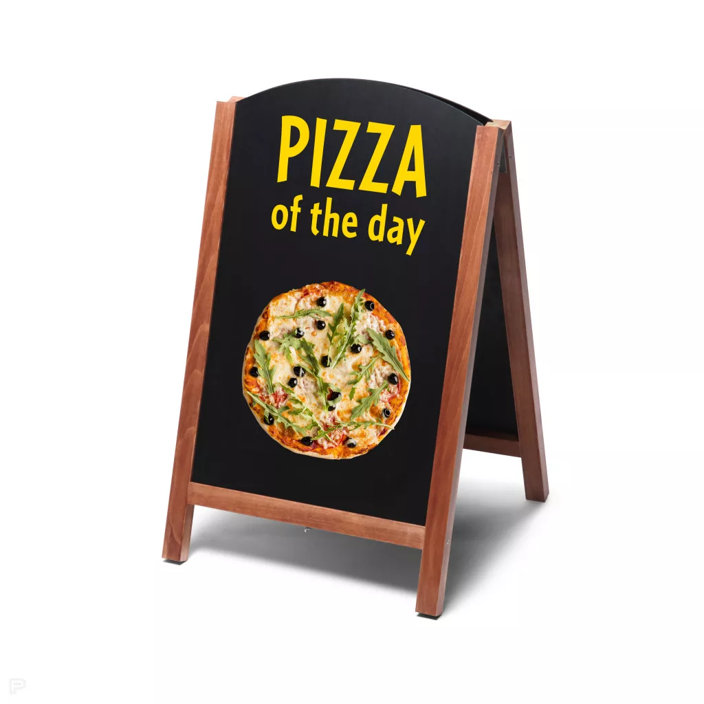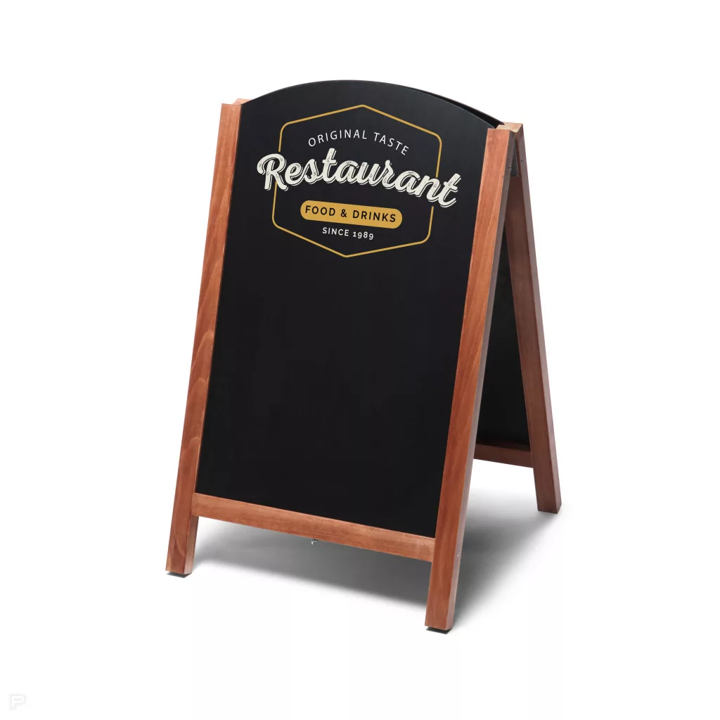 A prémium keményfa keret meleg, természetes hangulatot teremt, miközben a forgatható panelnek köszönhetően az ajánlatok vagy üzenetek pillanatok alatt frissíthetők.