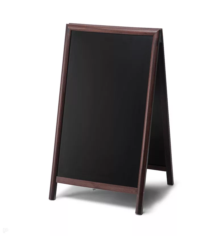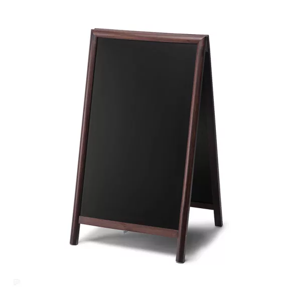 A magas minőségű keményfa profil és a matt lakkozott felület exkluzív, meleg hangulatot teremt, miközben a kétoldalas írható felület gyorsan frissíthető napi ajánlatokhoz, menükhöz vagy akciókhoz.